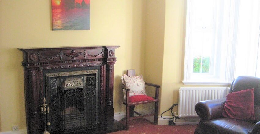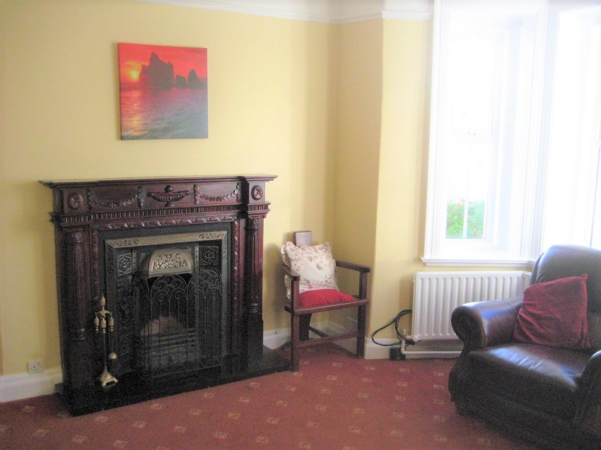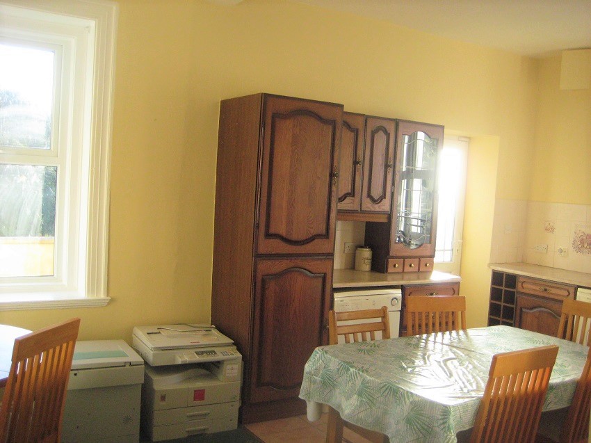 Ground Floor: Front porch 1.8m X 2.09m , entrance hall, sitting room with open fire 4.32m X 4.87m , fully fitted kitchen cum dining room 3.72m X 5.82m, toilet with whb 1.02m X 2.3m and stairwell.