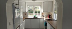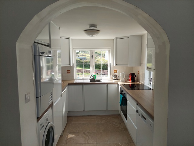 This property has been refurbished and tastefully decorated with tiled floors, fitted kitchen and vaulted ceiling with extensive natural light in the sitting room overlooking the peninsula.