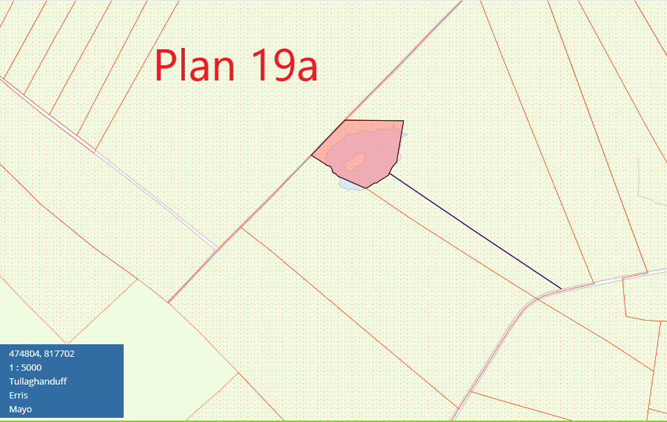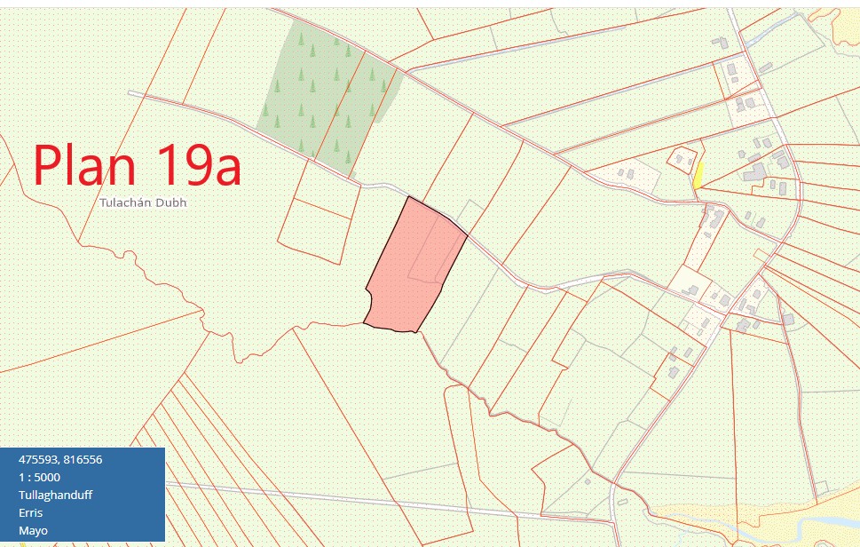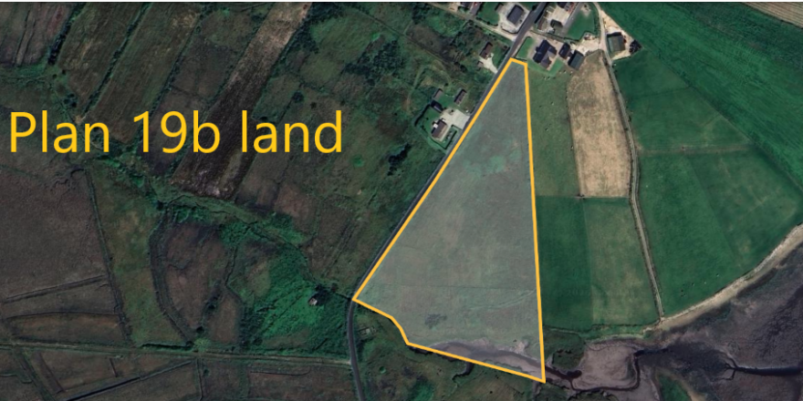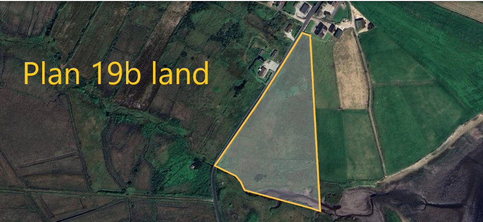 Plan 19b comprises of approximately 8 acres in area. It has approximately 280 metres road frontage onto the Tullaghanduff road and stretches onto the Tullagh Bay. This is mixed quality grazing land.